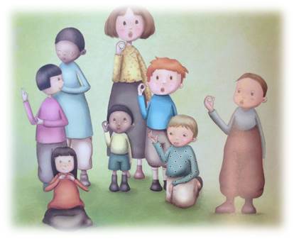 Ela tem de aprender umas palavras em gestos.Tem de aprender Língua Gestual